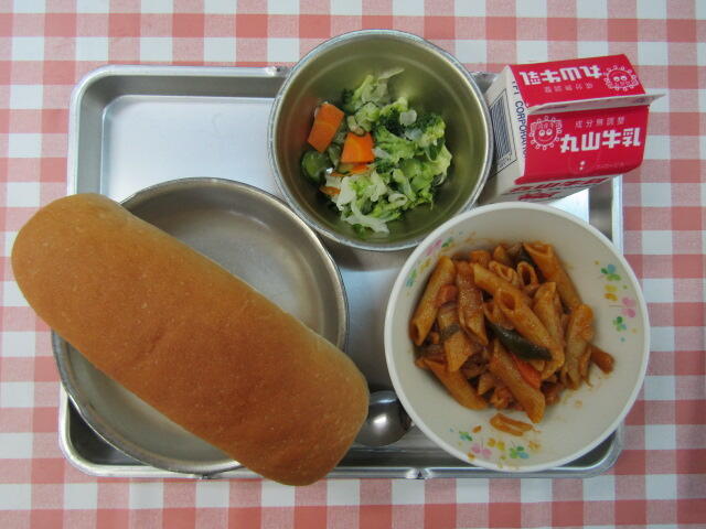 9月5日 投稿日時 : 2017/09/05 学校管理者 今日は、減量コッペパン、牛乳、ペンネナポリタン、ブロッコリーサラダです。今日のナポリタンは、いつものスパゲティではなく、ペンネを使用しています。ケチャップとソース、デミグラスソース、トマトピューレ等で味付けしています。