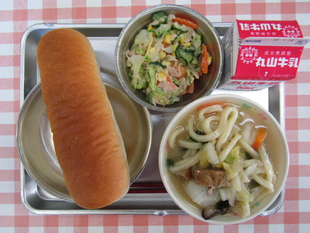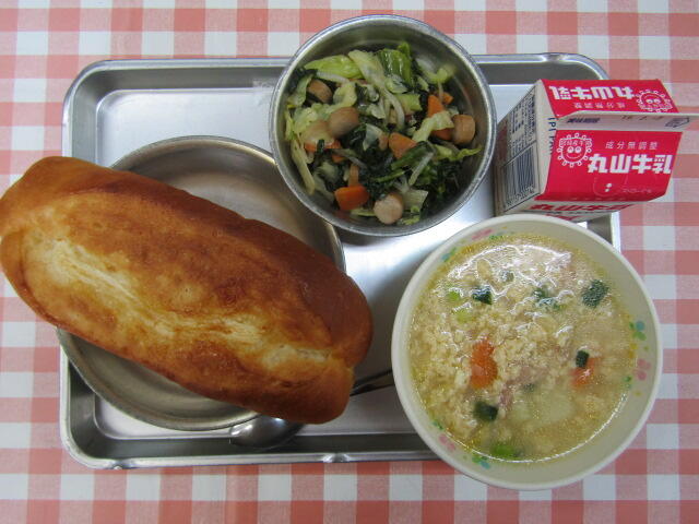 1月24日 投稿日時 : 2019/01/24 学校管理者 今日は、コッペパン、牛乳、魚のピリ辛揚げ、ゆでもやし、ポテトコーンスープです。今日24日から30日まで全国学校給食週間です。それに合わせ、ミルクプリンを出しました。