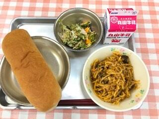8月25日(火)の給食 投稿日時 : 2020/08/25 学校管理者 カテゴリ:今日の給食 減量コッペパン 牛乳 ナスのミートソーススパゲティ ごまじゃこサラダちりめんじゃこ、ナス、キュウリは宮崎県産でした♪