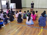 12月全校朝会 投稿日時 : 2017/12/01 学校管理者 12月の全校朝会校長先生が、ご自分の小さい頃の火事の体験を話しながら子供達に火遊びをしないこと、家庭でも火の取扱に十分気を付けることを伝えられました。その後、養護教諭の先生から風邪に負けないようにするためのお話がありました。風邪ウイルス役の先生が登場し、風邪予防戦隊フセグンジャーが登場し、大切なメッセージを子供達に伝えました。今年の冬は風邪をひかない子供達であってほしいと思います。