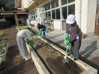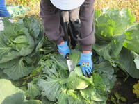 11月27日(木)の朝、大きく育ったキャベツの収穫をしました。子どもたちは、包丁を使って上手に収穫していました。その後、地域の方からいただいたブロッコリーの苗を植え付けました。寒さが増す季節の中でも、寒さに負けず虫にも負けず、すくすくと育ってほしいものです。学校園には現在、白菜やレタス、かぶ、スティックセニョールなども植えています。