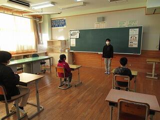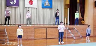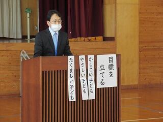 「校長先生の話」では、①頑張った2学期について、②目標を立てること、③礼儀をしっかりすること、の3つの話をしました。①は4名の子どもたちの2学期の頑張りを振り返り拍手を送りました。②は、「1年の計は元旦にあり」と言われること、そして元日には必ず目標を立てましょうというお話をしました。③は、お正月には、親戚の人や家族等へ新年のあいさつをはっきり、しっかりと言えるようになりましょうというお話をしました。みんな、表情よく話を聞いてくれたので、冬休みにも頑張ってくれるだろうと期待が高まりました。