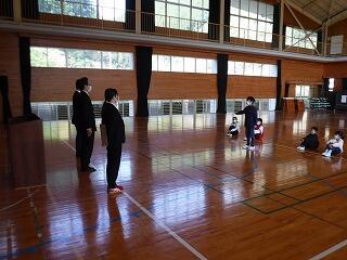 はじめに全校集会を開き保健面・生活面・安全面についての話をしました。