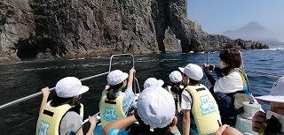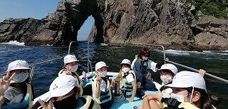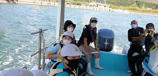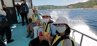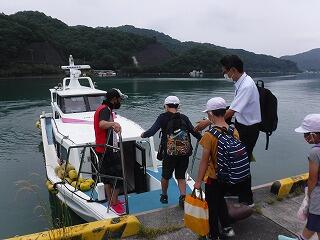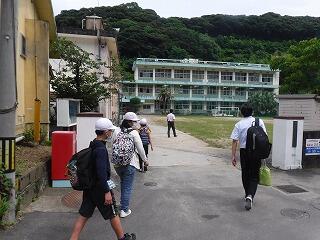 今回は、合同遠足として「ビーチの森すみえ」に3校が集合して活動しました。島野浦学園の児童は、チャーターした船でやって来ました。熊野江小と浦城小の児童は、路線バスを使って行きました。