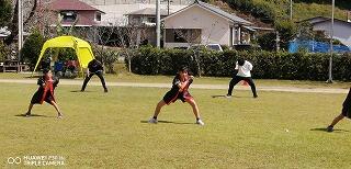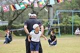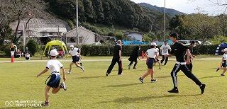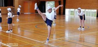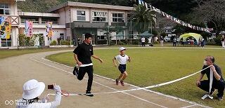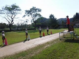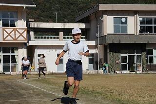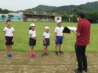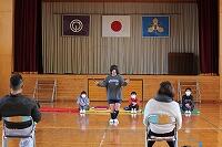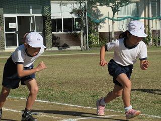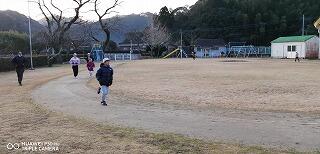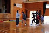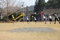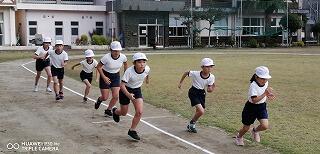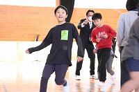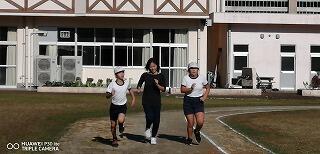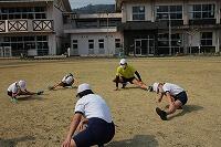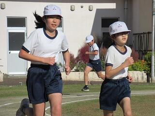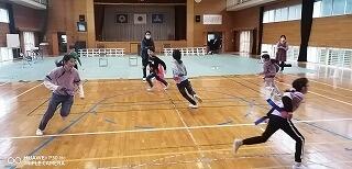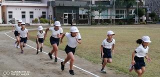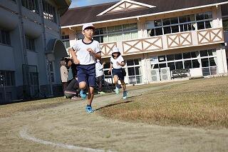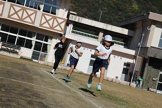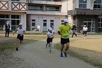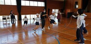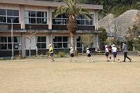 その後、運動場に出て実際に走りながら、ランニングの基礎を教えていただきました。準備運動のあと、だんだんとペースを上げて走ることやクールダウンの方法など教えていただきました。終わりには、4月にもまた来るからと子ども達に楽しく語りかけてくださいました。