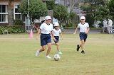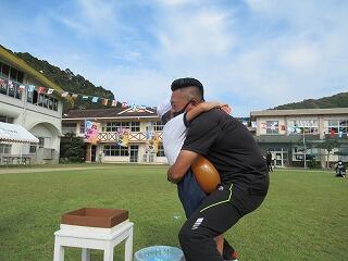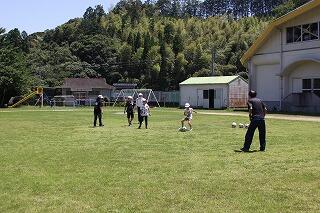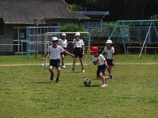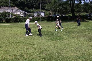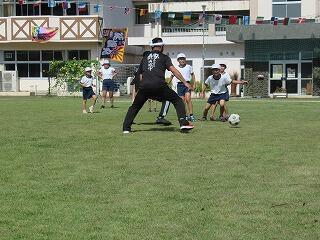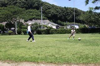 まず、いつものように運動場でサッカーを一緒に楽しみました。子ども達とはじめてサッカーをしたときより、パスやシュートがとても上達していて、お二方ともびっくりされていました。