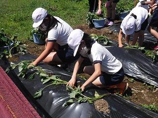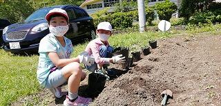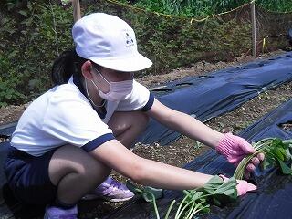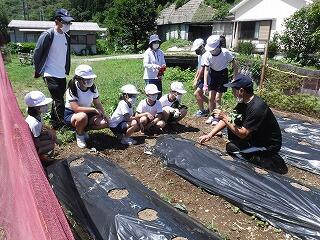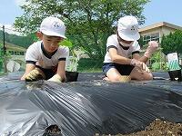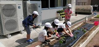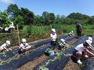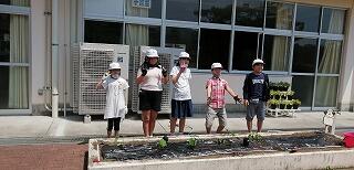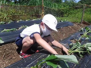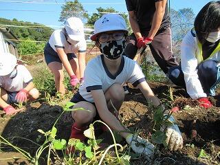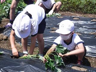 子ども達が、栽培園に「浦城っ子農園」と名前を付け、野菜の栽培活動を頑張っています。もちろん先生たちも一緒になって汗を流しています。