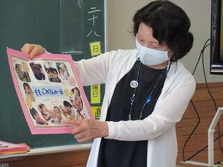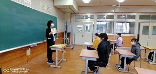 次に、学級での指導の時間です。新たな課題や作品等を配りました。
