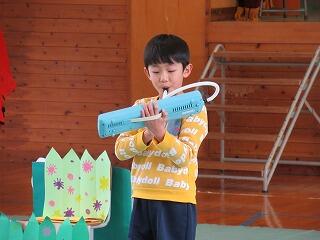 プログラムは、①なわとび発表「個人演技」「ながなわ」、②群読「五十音」「竹取物語」、③リコーダー演奏「パフ」「カントリーロード」、④合奏「ミッキマウスマーチ」、⑤合唱「はじめの一歩」「花は咲く」でした。