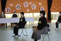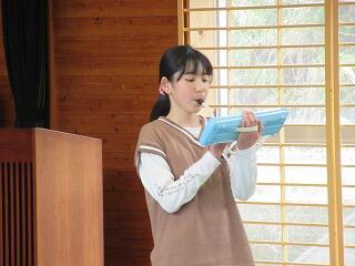 2人の卒業生に卒業証書が手渡されたあと、卒業生はステージ上で将来の夢を発表しました。そのあとの「別れの言葉」では、これまでの思い出、感謝の気持ちなどを在校生とともに述べあいました。