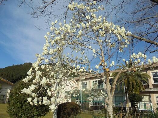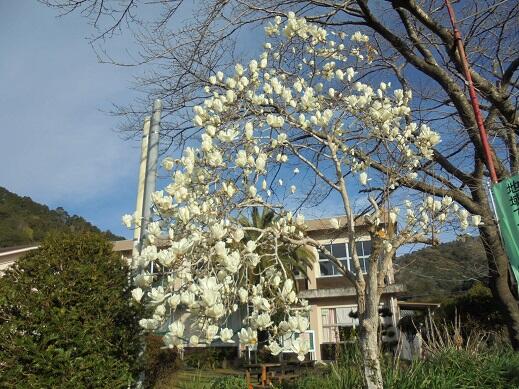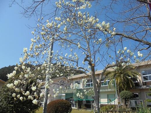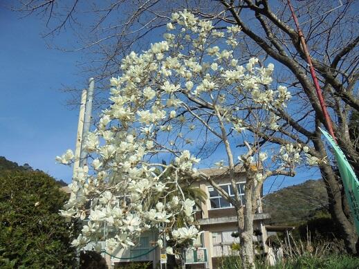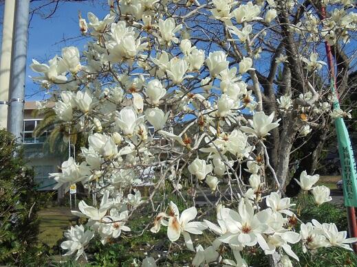 今日のハクモクレンと卒業式用の花