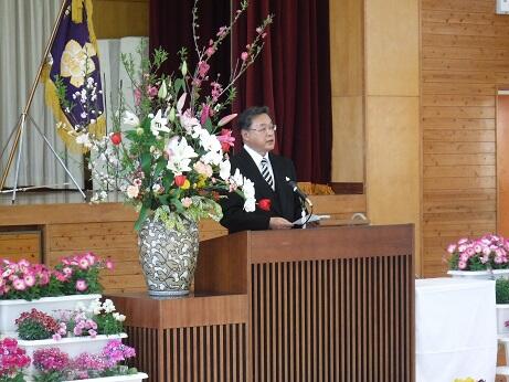 25日の卒業式には式場にたくさんの花を飾って卒業生を祝います。