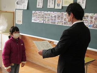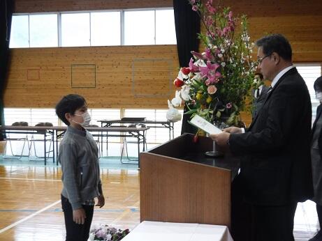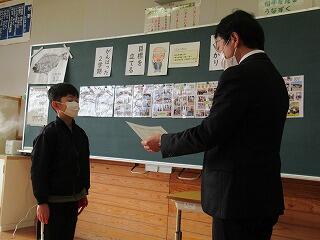 修了式では児童一人一人に修了証を渡しました。みんな立派な態度で受け取りました。
