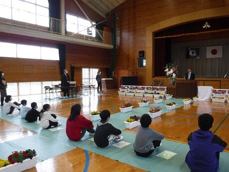 離任式では退職を含め3名の先生方がこの浦城小を去られました。