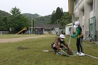 6月に入り雨も心配していたのですが、すっきりと晴れ最高の遠足日和となりました。ゲームをしてふれあったり、班の仲間とお弁当を食べたり、遊具で一緒に思いっきり遊んだりして、島野浦、熊野江の仲間と楽しく過ごすことができました。