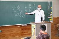 その後、教室に上がり谷川さんから子ども達へお話をしていただきました。谷川さんは、高校時代アジアユース代表選手、大学サッカー選手権大会優勝、高校体育教師を38年間務めながら国民体育大会優勝、順天堂大学非常勤講師などなど、書き切れないくらい多くの功績を残されています。