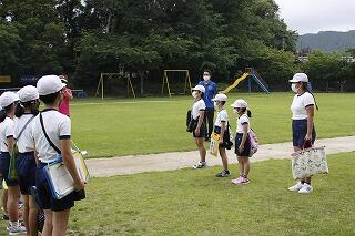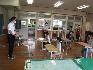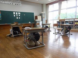 火災発生を想定した避難訓練を行いました。3年生は学習室、6年生は家庭科室で学習中に火災が発生したという想定で行いました。子どもたちは、みな真剣な顔で避難をし、発生から1分28秒で無事けがなく、運動場に避難することができました。