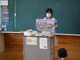 生活目標についての話では、年間を通して頑張ろうと決めている「浦城っ子七箇条」の一つである「自分の考えをはっきり言う」という目標について具体的な場面をあげながら話をしていただきました。相手とのコミュニケーションをうまくとるためにも、自分の考えをしっかり伝えられる子に育って欲しいです。