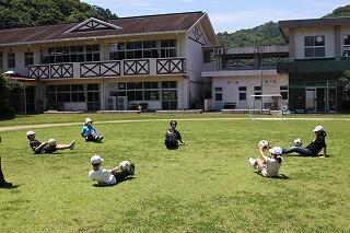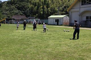 今回の「よのなか教室」では、これまでに何度も来ていただいていたサッカー教室を行いました。FC延岡の谷川修三さんと敷石輝幸さんが来てくださりました。