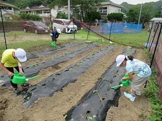 浦城小では今年も1年を通して栽培活動を行っていくことにしています。子ども達は、自分たちが食べるためだけでなく、お世話になっている方々に届けるためにも頑張るぞと意欲的です。サツマイモ、トマト、トウモロコシ、スイカ、きゅうりなど、育てたいものももう考えているようです。