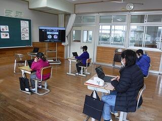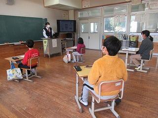 今日、浦城小でも「スマホ・ケータイ安全教室」をリモートで実施しました。福岡にいるNTTドコモの講師の方と浦城小の子ども達とがZoomを使って接続して行いました。子ども達は、一人一人がヘッドセット(ヘッドホンとマイクがセットになったもの)を身に付けながら講師の方の話を熱心に聞いたり、動画を見たりしていました。