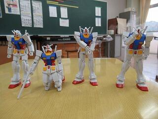 そして、今日のクラブ活動で、送られてきたガンプラキットを使ってプラモデルづくりにチャレンジしました。説明書を見ながら試行錯誤して作っていきました。予定より時間がかかってしまいましたが、無事完成させ、みんな笑顔いっぱいでした。