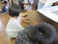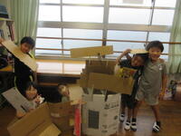 3年生 ⇒ 図工「クミクミックス」では、段ボールを自由な形にカットし、切り込みを入れた物にはめ込んで、自由な発想で組み立てていました。友達と作業分担をしながら、自分のアイデアを生かして楽しく活動していました。3・4年合同体育では、体育館で、じゃんけんゲームやドッジボールをして、たくさんの友達とふれあいました。