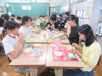 11月13日(木)4校時に「味覚の授業」がありました。宮崎市より、シェフでありパティシェである講師の方に来ていただき、食育の一環として、味覚に関する体験をさせていただきました。子どもたちは、五味(甘味・塩味・酸味・苦味・旨味)を身近な物から感じ取り、一つ一つの味について学びを深めることができていました。また、今回は保護者にも参加いただき、家庭教育学級の活動も兼ねながら、親子一緒に体験を共有できる、よい機会となりました。味覚の授業を通して、五感を働かせて食を味わうことの大切さを改めて感じたところです。講師の先生、ありがとうございました!