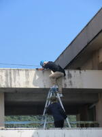 さて、夏休み中の学校では、特に「安全管理」に関する点検作業や修繕作業が行われています。延岡市教育委員会から依頼を受けた業者さんに作業をしていただいています。例えば、「遊具のブランコのボルト交換やペンキ塗り」、「校舎や敷地内施設の点検・調査」などです。夏休み中には、「消防設備の点検」も予定されています。2学期からの教育活動がより「安心・安全」に行われるよう、今後も安全管理等を徹底していきたいと考えています。