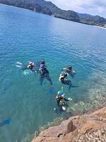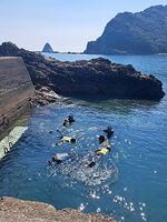 9月16日(火)の午前中、浦城港近くの海で「シュノーケリング体験」をさせていただきました。実は、この体験を7月中旬に計画していたのですが、天候不良の理由で3度延期になり、4度目でようやく実現できました。今日は天気がよく、海も穏やかで、気持ちよくシュノーケリング体験をすることができました。海の中を眺めると、クマノミなどの熱帯魚や小さな魚たち、きれいなサンゴ、ウニや貝などに出会うことができ、海の中の世界を満喫することができました。子どもたちからは、感激の声がたくさんあがっていました。地元浦城のステキなところに体いっぱいふれることができ、貴重な感動体験をすることができました。ご指導いただきました、「延岡マリンサービス」の方々をはじめ、体験につないでくださった「うらしろスマイルプロジェクト」の方々、本当にありがとうございました。心ふるえる最高の時間でした!