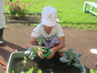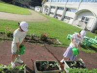 9月17日(水)の朝、野菜の苗の植え付けをしました。今回は、「スティックセニョール」「フダンソウ」の苗をプランターに植え付けました。子どもたちが、これからも水やりなどのお世話をがんばっていきます。