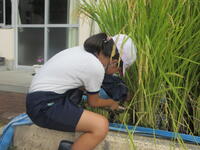 数日前には、学校田の稲が出穂しました。水の管理等がなかなか難しいですが、技術員の先生の協力のおかげで、すくすくと育っています。秋の実りが今から楽しみです。
