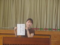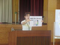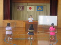 式の終わりには、生徒指導に関する担当職員が、「自分も相手も大事にする」という話の中で、特に、友達や家族、先生、地域の方々の気持ちをよく考えて過ごすこと、さらには、保健指導担当職員が、「生活リズムを整えて過ごす(決まった時間に起きる・寝る、朝ご飯をしっかり食べる、昼間しっかり活動する)」ことの大切さや、熱中症・感染症対策をしながら、元気に過ごすことについて話してくれました。私たち職員も、子どもたちと一緒に元気いっぱい過ごしていきたいと思います。2学期も、どうぞ浦城小学校をよろしくお願いいたします。
