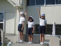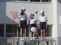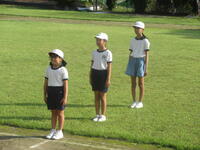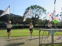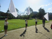 子どもたちは、10月26日の「浦城スポーツフェスタ」に向けて、いっしょうけんめい練習に励んでいます。全体練習では、自作の旗を掲げながら入場行進をしたり、開会式の流れを動きとともに確認したりと、がんばっています。これまで室内で練習してきたダンスを運動場で練習する姿も見られるようになり、とても微笑ましく感じています。