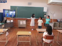 7月18日(金)、川島小の児童との交流学習がありました。毎週木曜日は、川島小のプールをお借りし、港小の児童と水泳合同学習をしていますが、今回は川島小の教室で、同学年の児童(川島小・港小)との交流をしました。