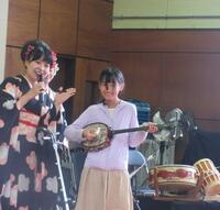 二つ目は、10月21日(火)の港小学校との交流活動です。宮崎市の「村上三弦道」さんによる、津軽三味線・民謡スクールコンサートに一緒に参加させていただきました。三味線の音色を感じたり、実際に触れたりすることもでき、子どもたちは、「音楽がもっと好きになりました!」などの感想も伝えてくれました。その後は、港小のお友達と教室やランチルーム、運動場で楽しく交流をしました。