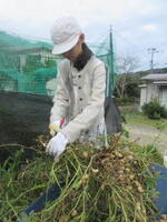 11月6日(木)の朝、久しぶりに浦城っ子農園で穫れた野菜の販売をしました。今回は、落花生とほうれん草を中心に出品しました。昨日は、子どもたちが落花生の収穫作業をがんばっていました。土の中に鈴生りに実った落花生を間近に見ることができ、本物にふれるよい体験ができたと思います。今日は、野菜販売に来てくださった地域の方々、野菜の提供をしてくださった地域の方、どうもありがとうございました! 落花生を塩ゆでにして食べたいなあ~。
