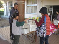 9月11日(木)、2学期1回目の「野菜販売」がありました。今回は、学校園で収穫した「小松菜・ししとう」を中心に販売させていただきました。収穫した野菜を袋詰めする作業も「おてのもの」です。これまでの経験がいきているのでしょうね。子どもたちは、販売の呼びかけやお買い上げ商品の袋詰めなどもがんばっていました。今回も地域の方から、販売のために野菜を提供していただきました。いつもありがとうございます。また、地域の方々をはじめ、配達や用事で学校に訪問された方々も購入していただきました。ありがとうございました。心よりお礼申し上げます。次回は、9月24日(水) 9:00~を予定しております。ご都合がつかれる方は、ぜひ浦城小学校へお越しください。
