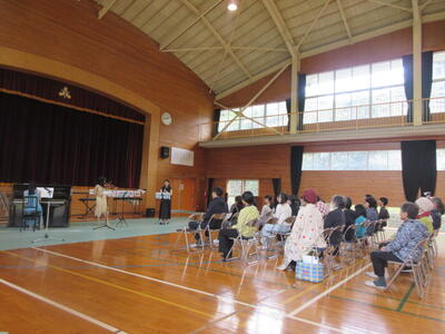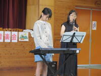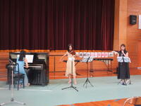11月11日(火)の午後、ミニ音楽会を開催しました。この音楽会には、バイオリン、クラリネット、ピアノの演奏者3名が講師として来校され、「サウンドオブミュージック」や「ホールニューワールド」など、素晴らしい演奏を披露してくださいました。子どもたち3人も、演奏者と一緒に「パフ」の合奏(木琴、リコーダー、キーボード)をし、これまで練習してきた成果を大いに発揮していました。後半には、「見上げてごらん夜空の星を」といった名曲を、演奏に合わせてみんなで歌うなど、会場みんなでステキな時間を過ごしました。とても心が癒やされる音楽会でした。保護者や地域の方々、参加してくださった皆さん、ありがとうございました!