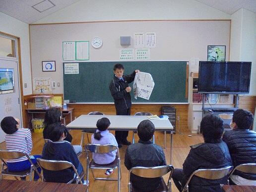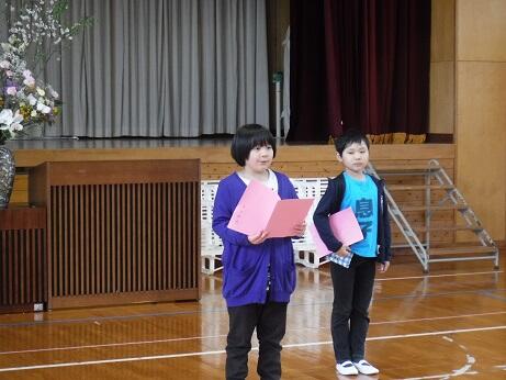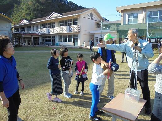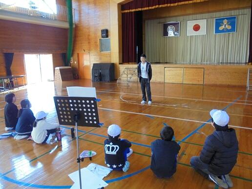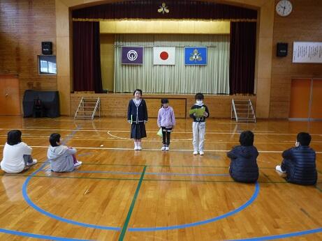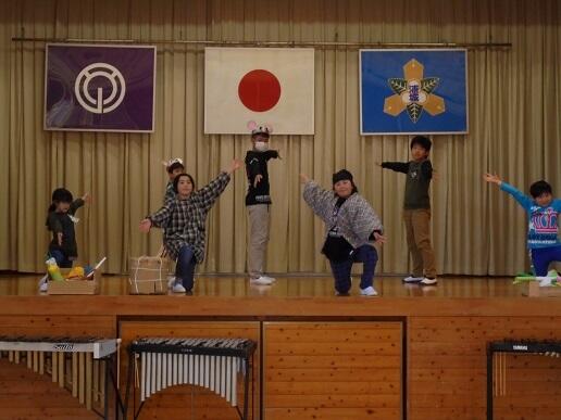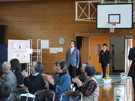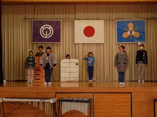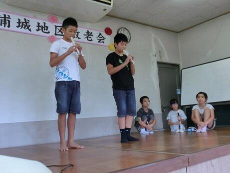 ところで、16日(日)に浦城区の敬老会が開催されました。本校からも4,5,6年生、5名が参加し出し物を