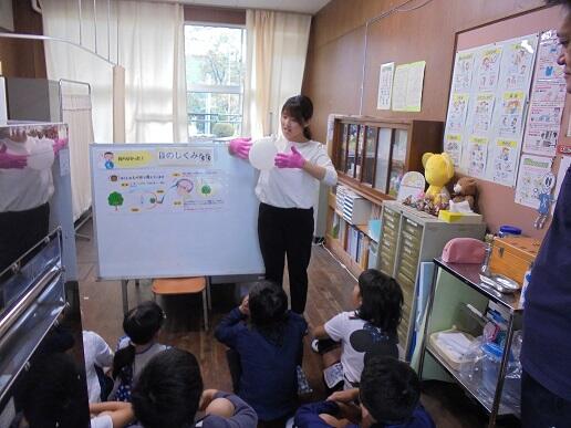 目の中には水晶体があることや近くばかりを見ていると目が緊張することなどを
