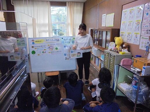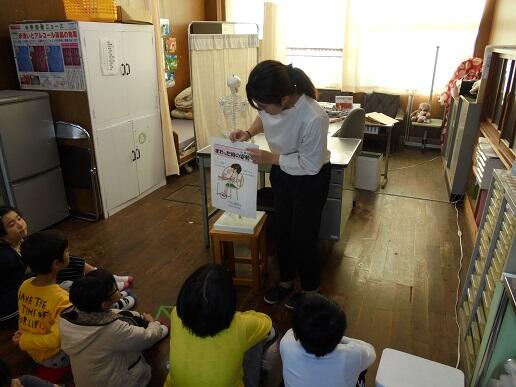 1年生は博士と歯磨き戦隊ミガクンジャーに歯磨きの仕方を教えてもらいながら