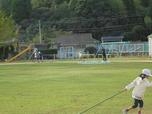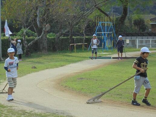 今朝は、運動会前なので、みんなで運動場の整備をしました。