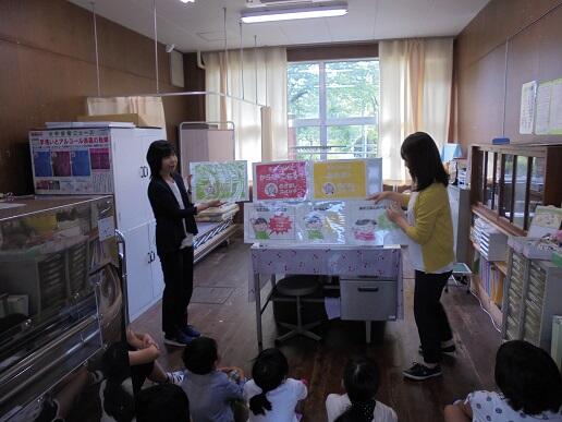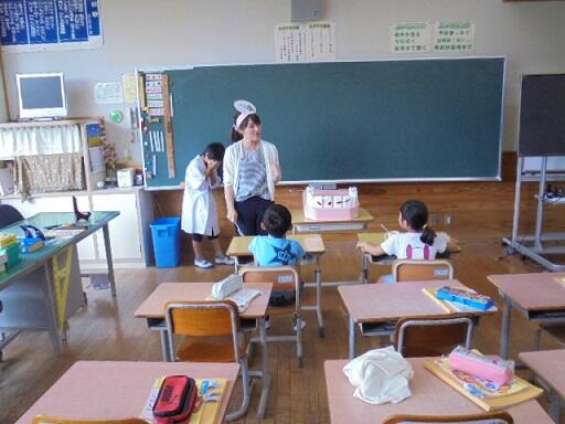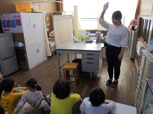 そこで、4年生以上が委員会活動として1年生に歯磨きの仕方を劇で教えました。