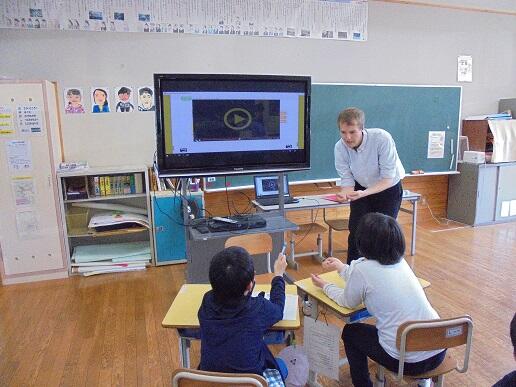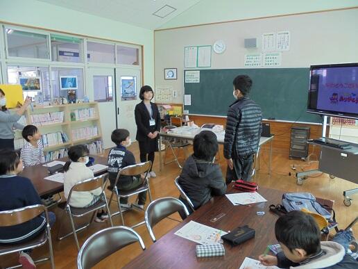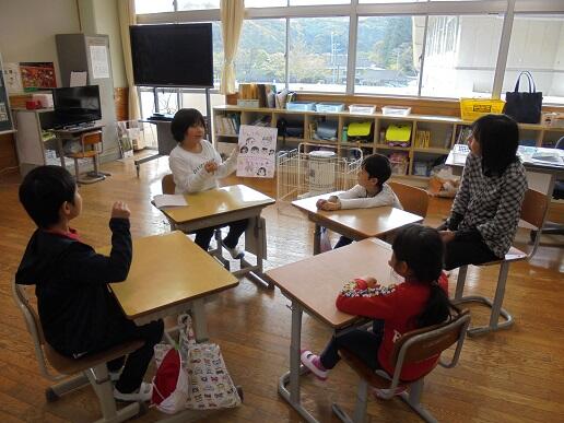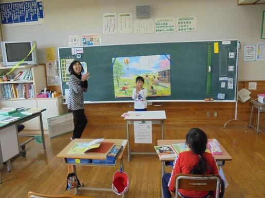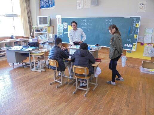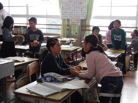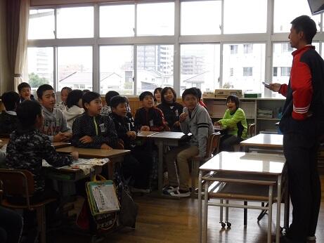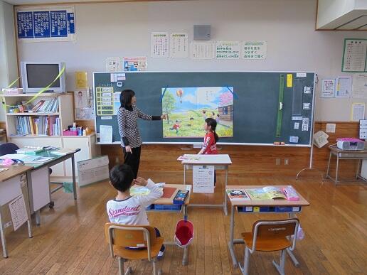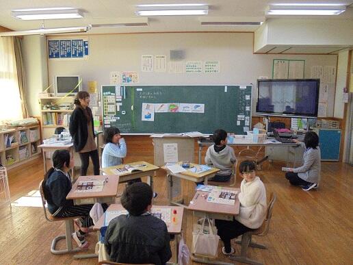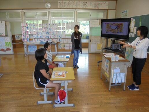1時間目は5,6年生、2時間目は4年生の外国語活動の授業に入ってもらいました。