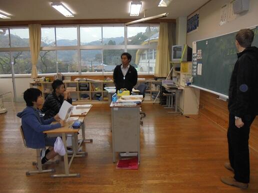 韓国人の女性とイギリス人の男性と主任の日本人男性、3名が来校されました。