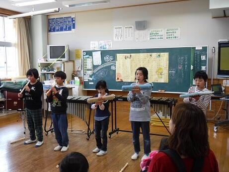 4年生3名によるリコーダーと鍵盤ハーモニカの合奏です。