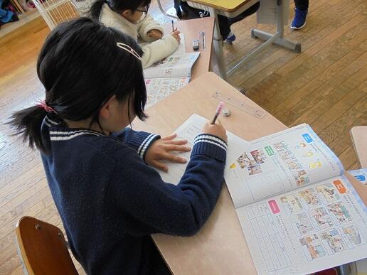 経過確認です。まだ3つかけない子もいますが、みんな2つ以上は書いていました。