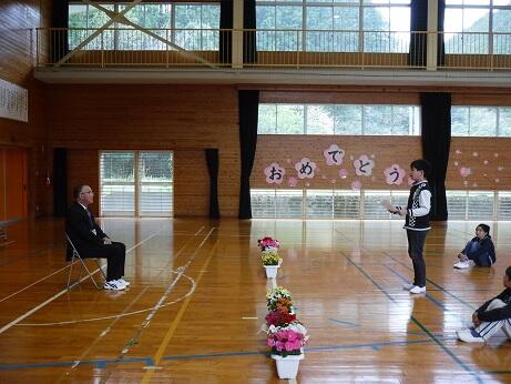 わざわざ宮崎市からこの浦城小学校まで来てくださいました。