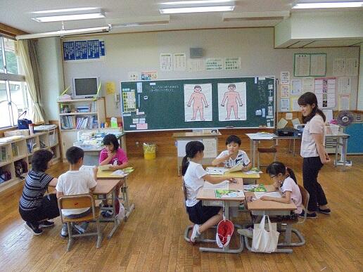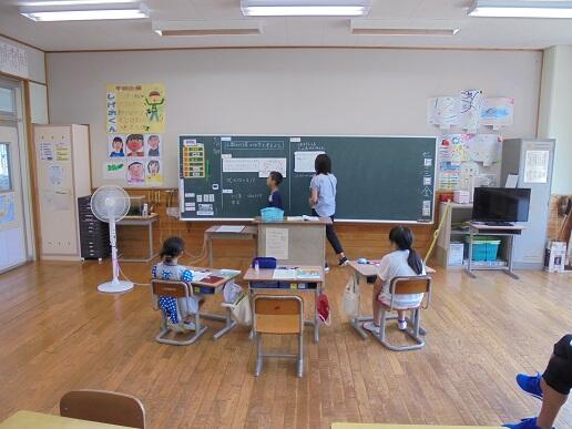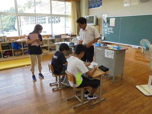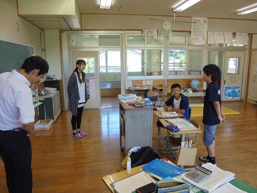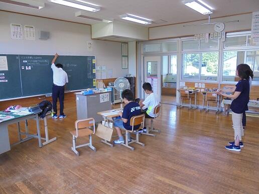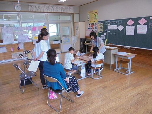 5,6年生は室内を点検します。児童用トイレは問題ありません。
